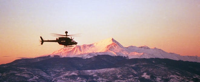 Greg immediately pulled back on the cyclic (the “stick”, so to speak) for what was a sudden nose-up maneuver. I had been looking down at a terrain map, so it all happened very suddenly… on the way to us becoming quite nearly vertical, I vividly remember seeing a wire through the chin bubble as it passed out of sight. In our near-vertical position, Greg put full left pedal into it, which initiated what would have been an impromptu hammerhead turn just shy of the wire… we were then nose-low, and flying back away from the wire… it apparently spanned the width of the canyon.